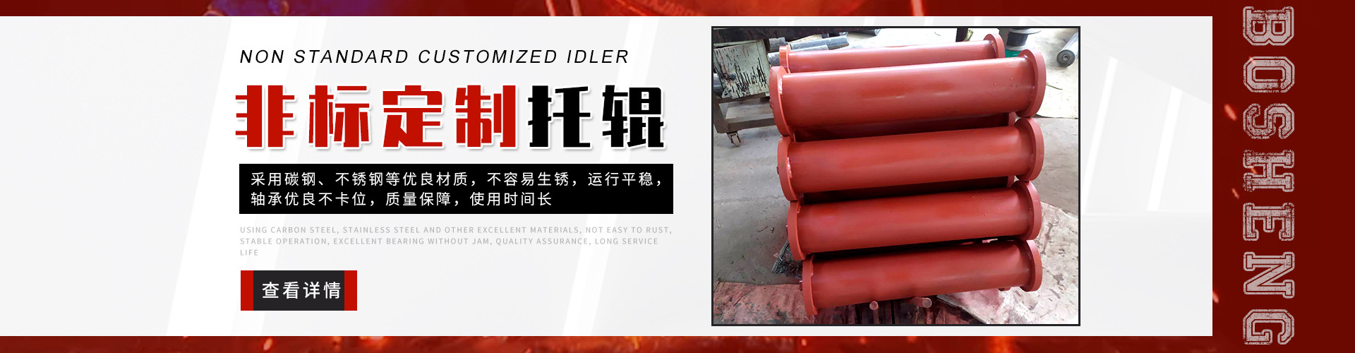 泰安博晟礦山機械有限公司位于山東泰安新泰市汶南鎮陳糧村。緊鄰京滬、京福、萊新高速公路。公路交通極為方便,環境優美。公司主要生產:托輥、托輥配件、托輥支架等皮帶輸送機配件。歡迎各界商友前來洽談考察。聯系電話:13954880316.   泰安博晟礦山機械有限公司采用國際標準設計、制造技術,將托輥的設計和制造提高到了一個更高的水平,生產的托輥具有小的旋轉阻力,長的壽命,小的維修工作量和高的承載能力。鋼管采用托輥專用高頻焊管,管內做去刺處理,圓度控制在特殊的公差范圍之內。軸是按標準公差加工的冷拉鋼制造。軸承座采用進口冷扎鋼板經多次工藝沖壓而成。托輥管和軸承座被自動焊接機械手焊接在一起,形成一個具有很高強度的整體構造。托輥軸承采用國內外知名品牌的大游隙深溝球雙密封軸承,使托輥具有理想的靜平衡和動平衡,其旋轉阻力優于國標。托輥密封采用綜合國外和國內迷宮式密封的特點進行了專門設計,內充耐高速高溫和超低溫抗氧化鋰基酯,有效防止雜質、水、空氣對托輥內部的侵蝕。   目前我們托輥系列產品有槽形上調心托輥組、槽形托輥、槽形下調心托輥組、承載托輥、緩沖托輥、回程托輥組、螺旋托輥、摩擦上調心托輥組、平行緩沖托輥組、平行上調心托輥、礦用托輥、煤礦專用托輥、梳型托輥、樹脂托輥、陶瓷托輥、橡膠托輥、錐形托輥、立輥等。規格:直徑50-219mm;長度190-2600mm。   泰安博晟礦山機械有限公司竭誠愿與廣大客戶合作,共同發展開發新技術新項目。泰安博晟礦山機械有限公司秉承